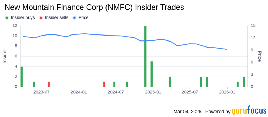 The NMFC insider purchase by Director Steven B. Klinsky stands out not only because of its value but also because of the individual behind it. Klinsky is a prominent figure within the company’s leadership structure and the founder of New Mountain Capital, the investment firm that sponsors New Mountain Finance Corporation. The nearly $1.9 million NMFC insider purchase involved shares bought directly from the open market, which is particularly important for investors analyzing insider activity. When insiders buy shares with their own money rather than receiving them through compensation packages, it often suggests genuine belief in the company’s long-term prospects. Because of Klinsky’s close involvement with the firm’s strategy and portfolio management, the NMFC insider purchase has drawn considerable attention across the investment community. Investors see insider transactions like this as a signal that leadership believes the current stock price may not fully reflect the company’s true value.