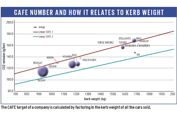The Corporate Average Fuel Efficiency (CAFE) framework regulates the average carbon dioxide emissions of an automaker’s entire fleet rather than individual vehicles. India introduced its first standards in 2017 to improve fuel efficiency standards and reduce oil consumption.