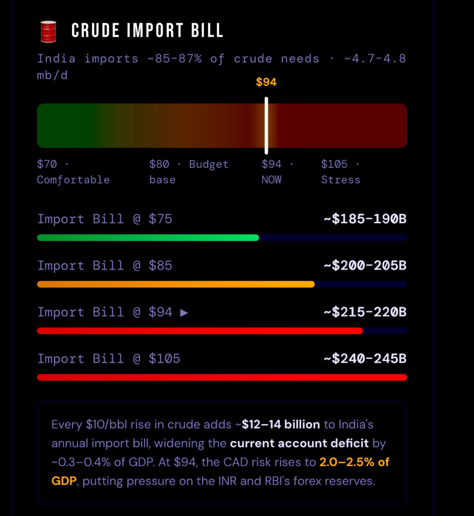 4. How does crude oil above $95 affect the Indian economy?